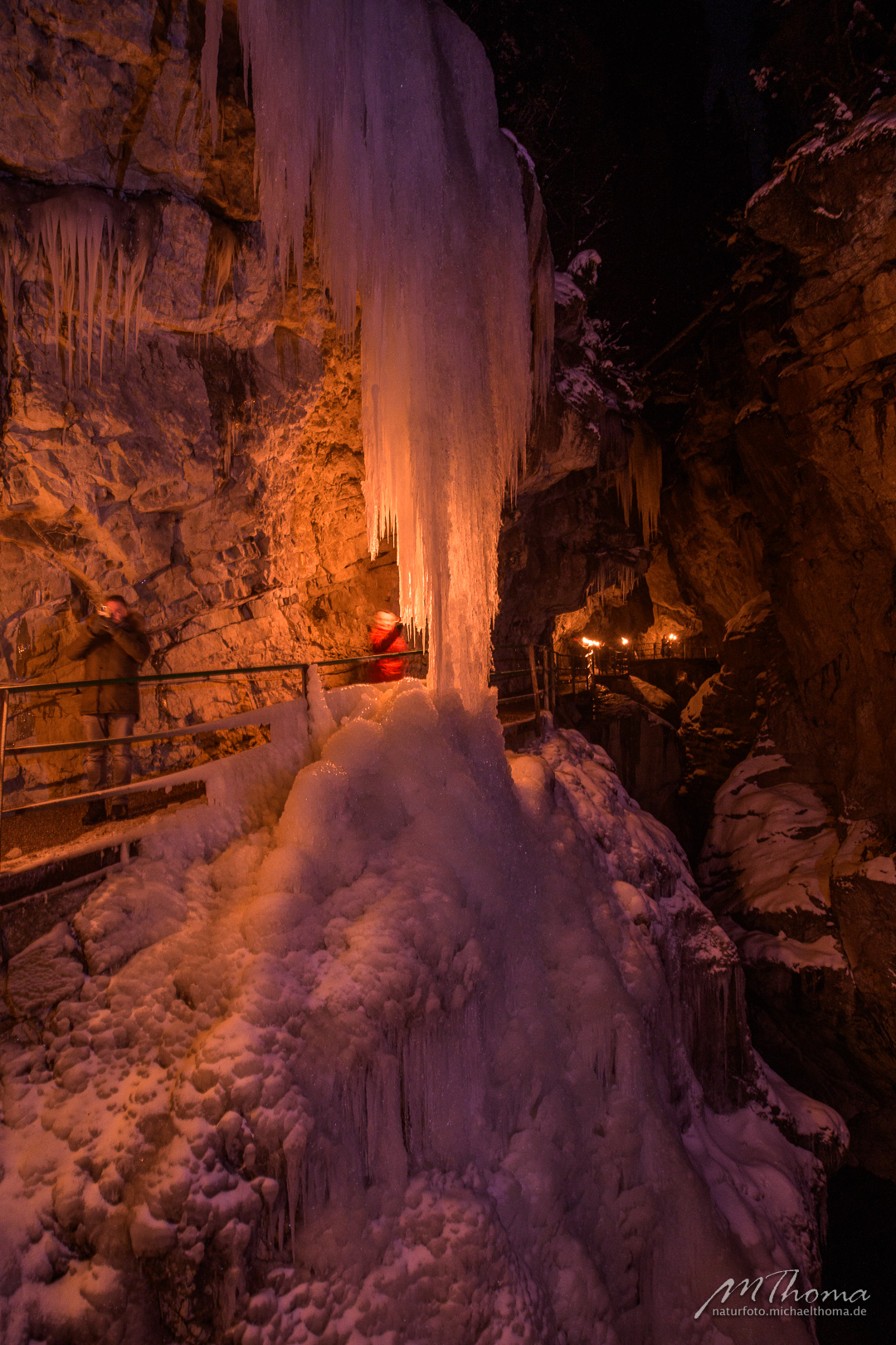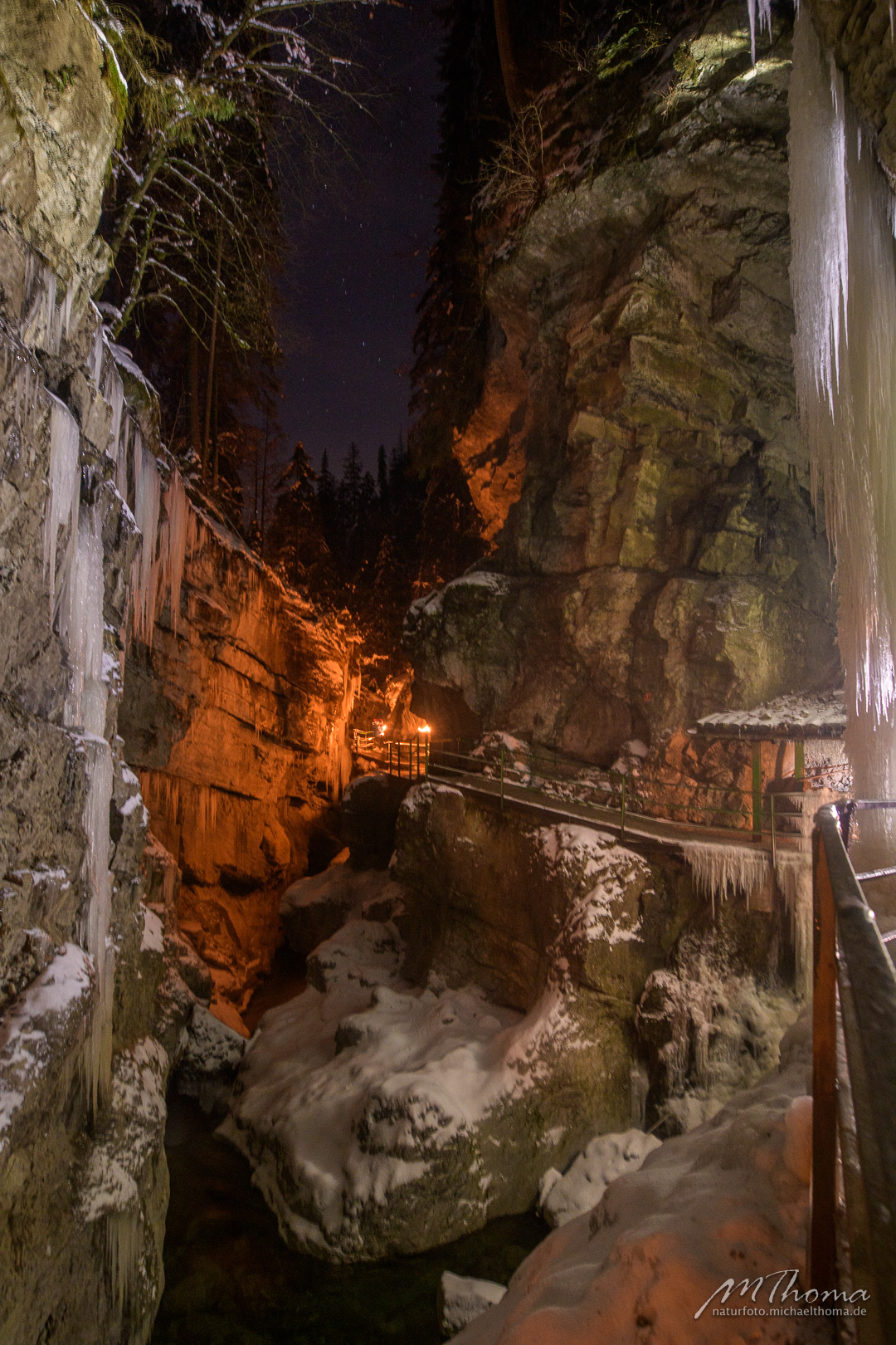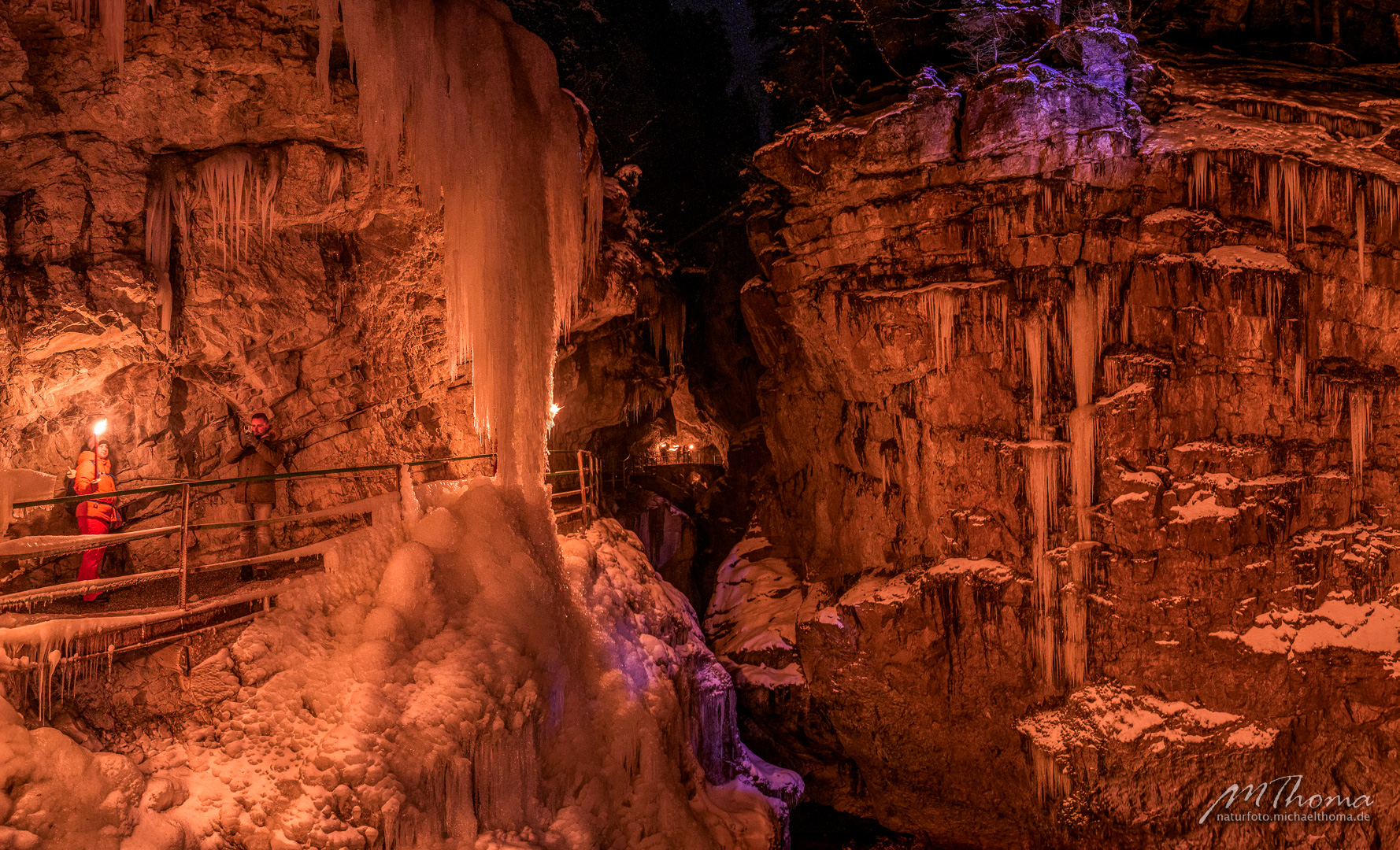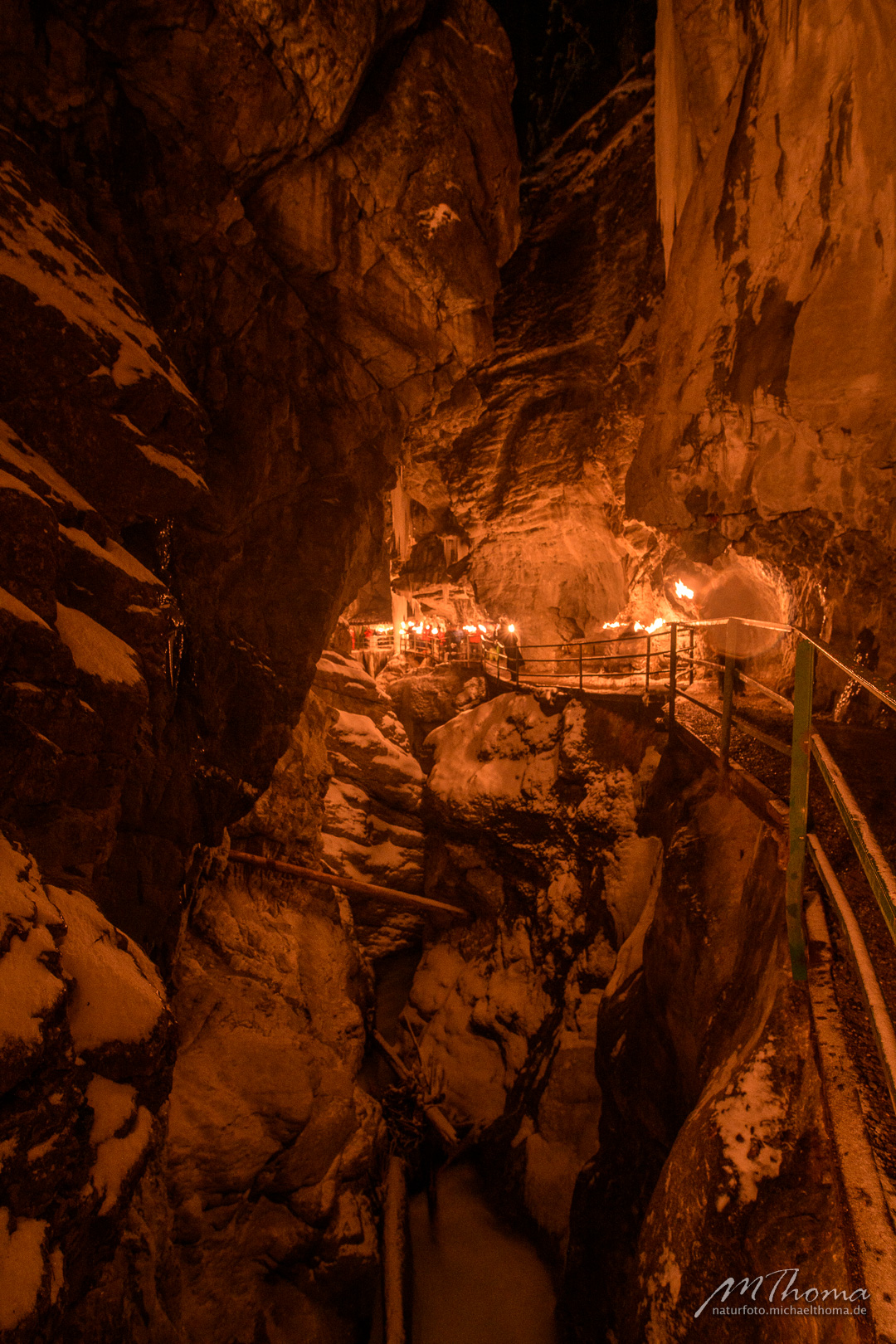 Jeden Winter fiebere ich den Fackelwanderungen in der Breitachklamm entgegen. Dieses Jahr war die Vorfreude besonders groß, weil es im letzten Jahr nicht geklappt hatte. Ich liebe einfach die besondere Atmosphäre der vereisten Klamm im Lichterschein der Fackeln