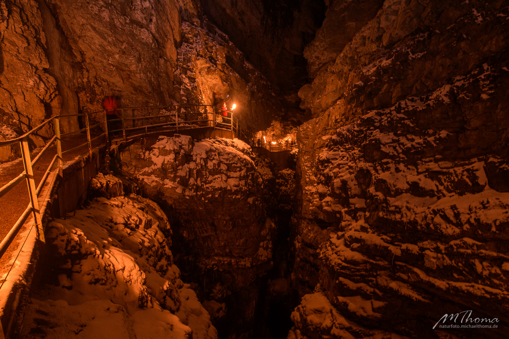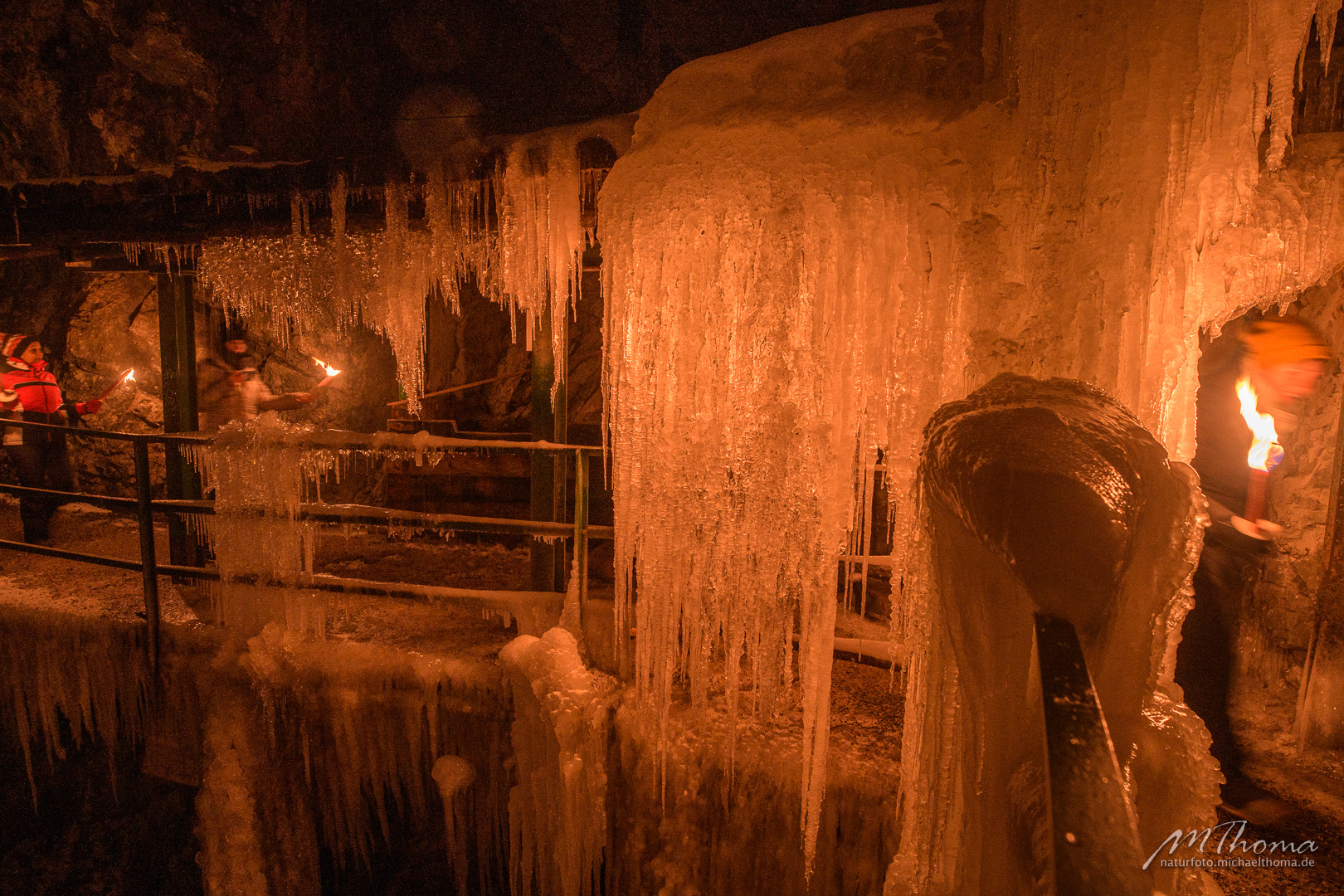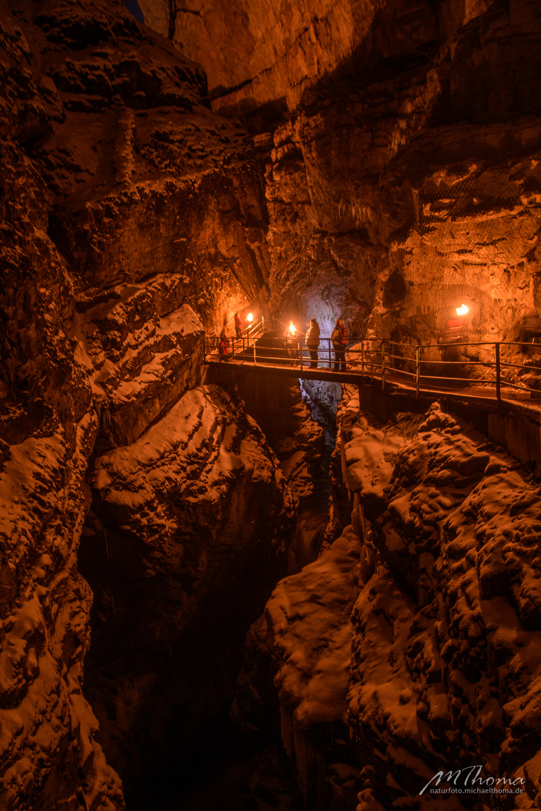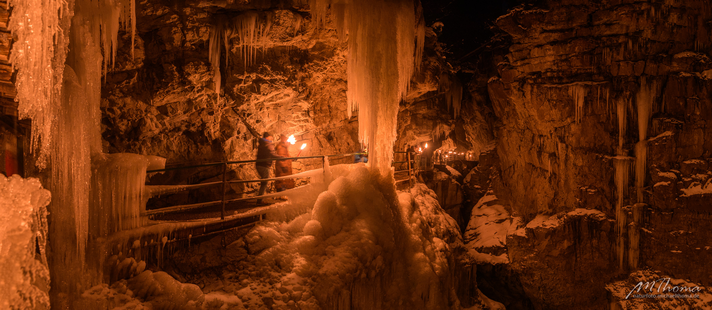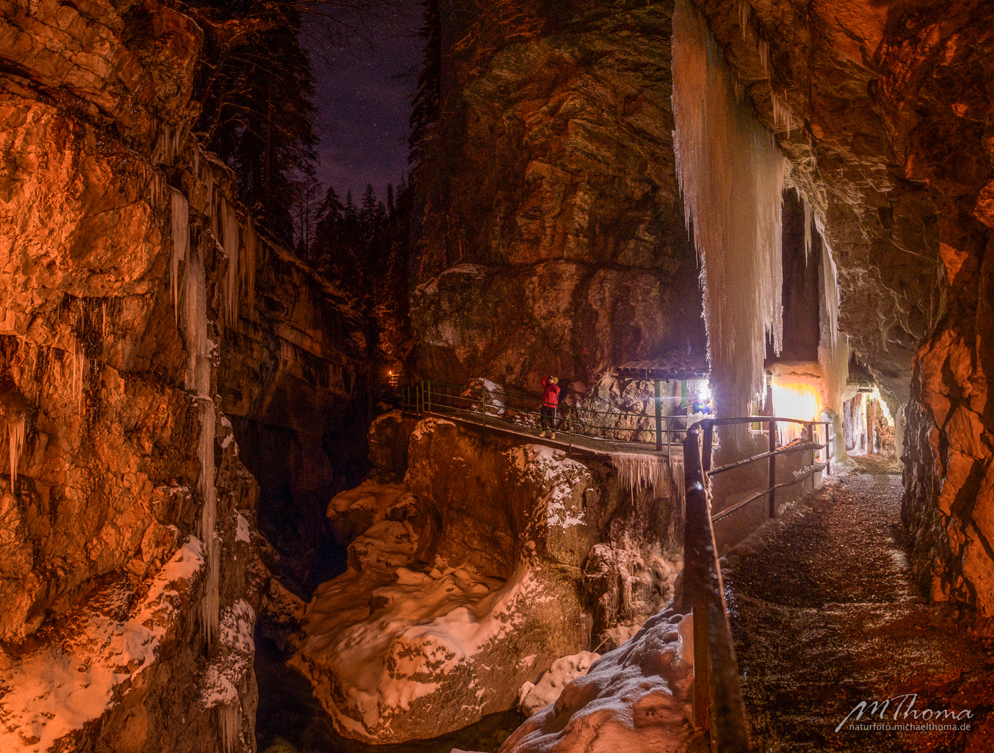 Jeden Winter fiebere ich den Fackelwanderungen in der Breitachklamm entgegen. Dieses Jahr war die Vorfreude besonders groß, weil es im letzten Jahr nicht geklappt hatte. Ich liebe einfach die besondere Atmosphäre der vereisten Klamm im Lichterschein der Fackeln