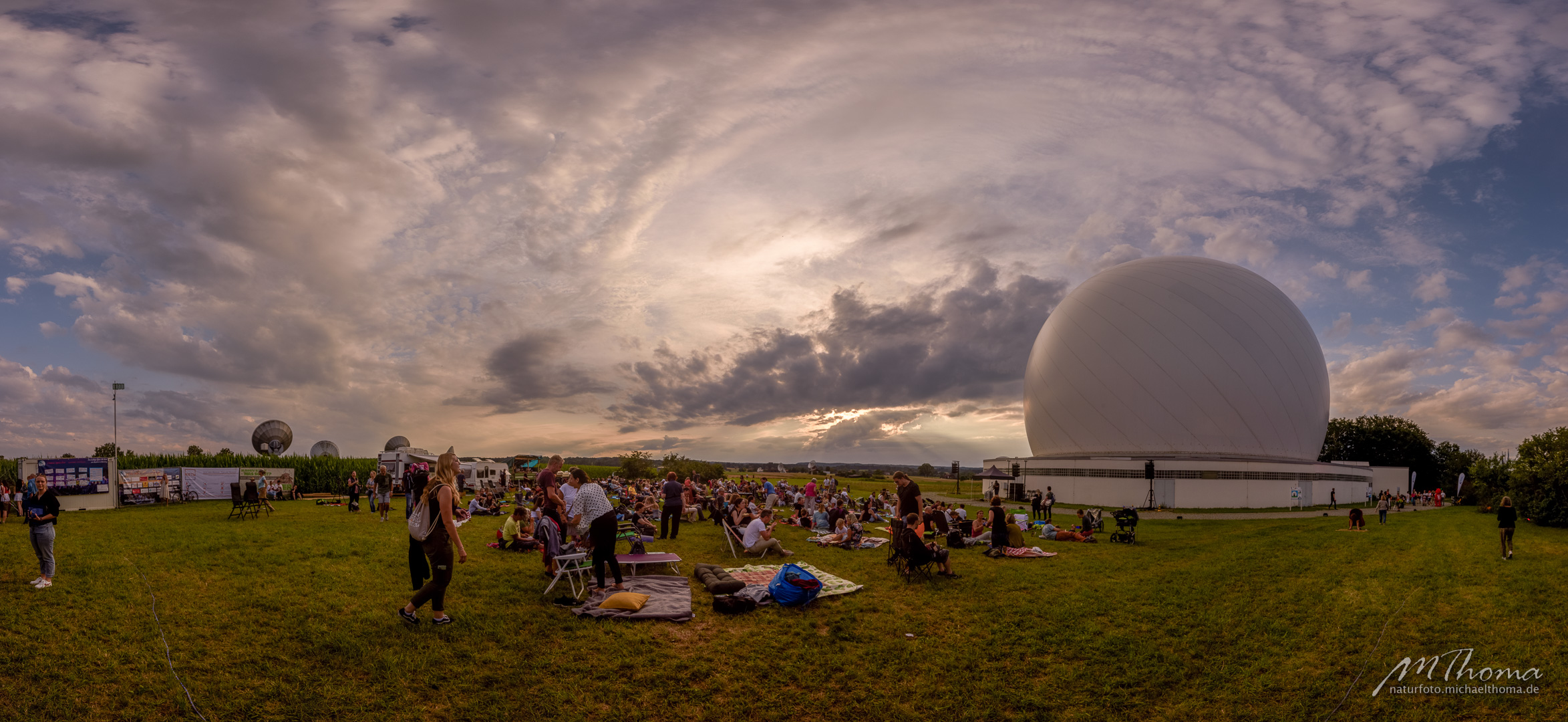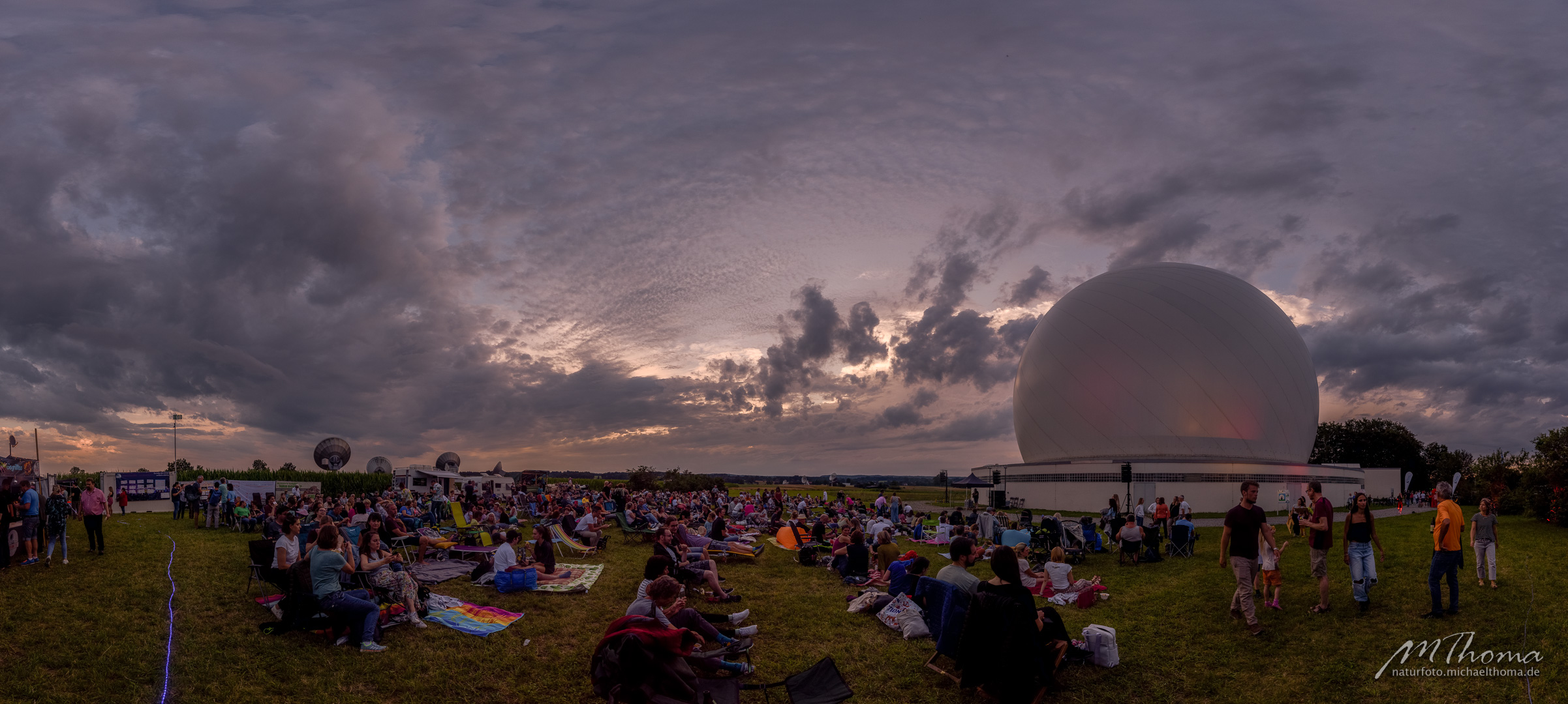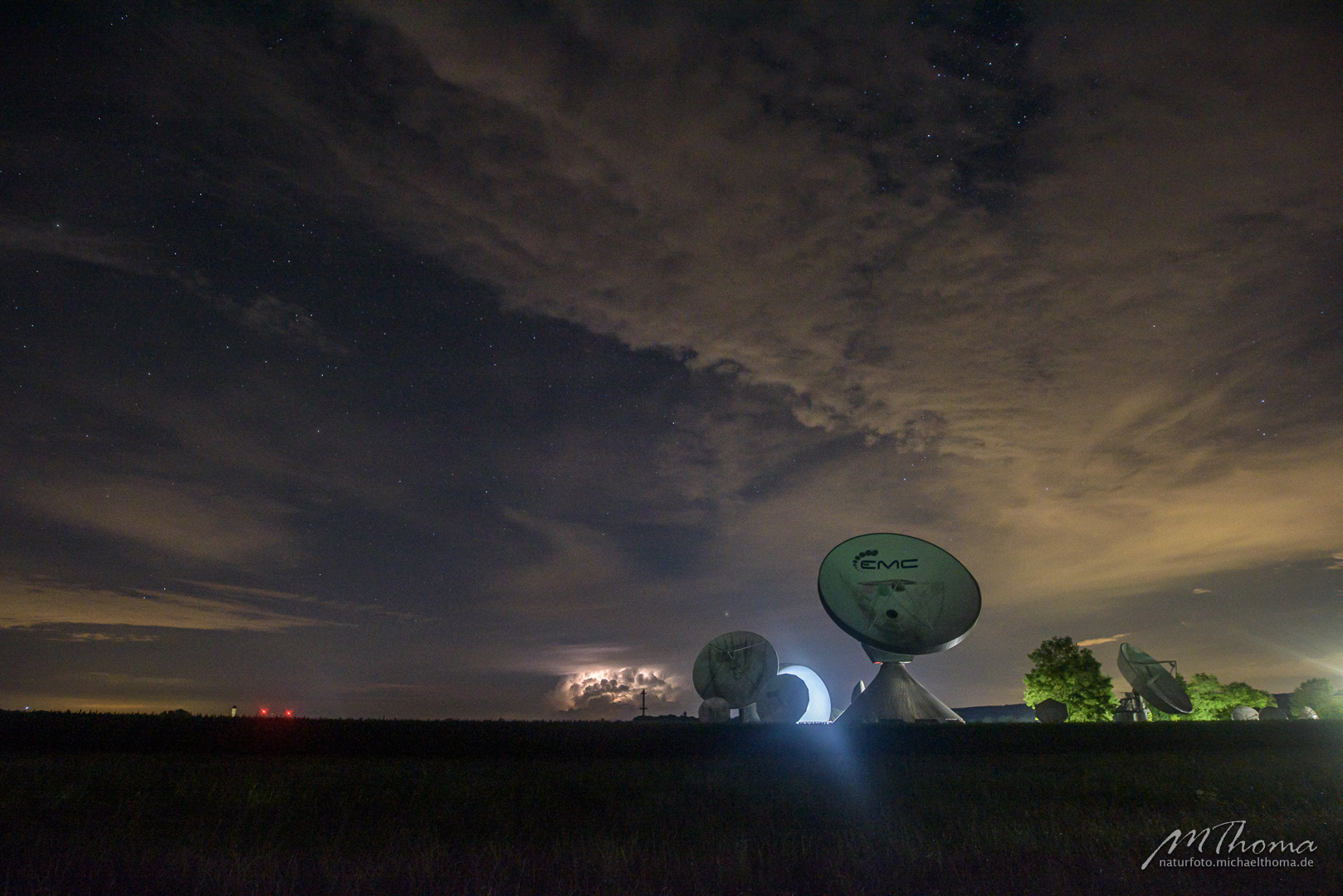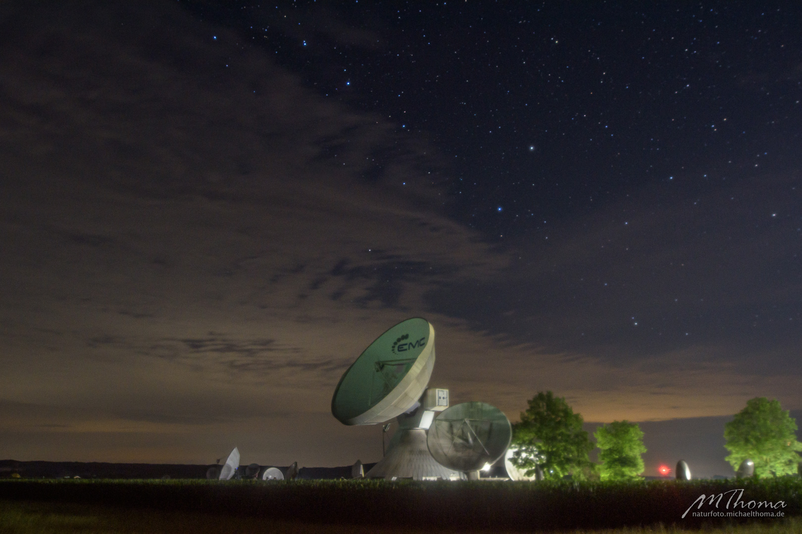 Nach Ende des Films hatte ich noch gehofft, vielleicht ein paar Wolkenlücken Richtung Milchstraßenzentrum zu erhaschen. In der Richtung blieb allerdings alles dicht. So ergab sich nur die Möglichkeit, den großen Wagen über den "Schüsseln" der Erdfunkstelle zu fotografieren.