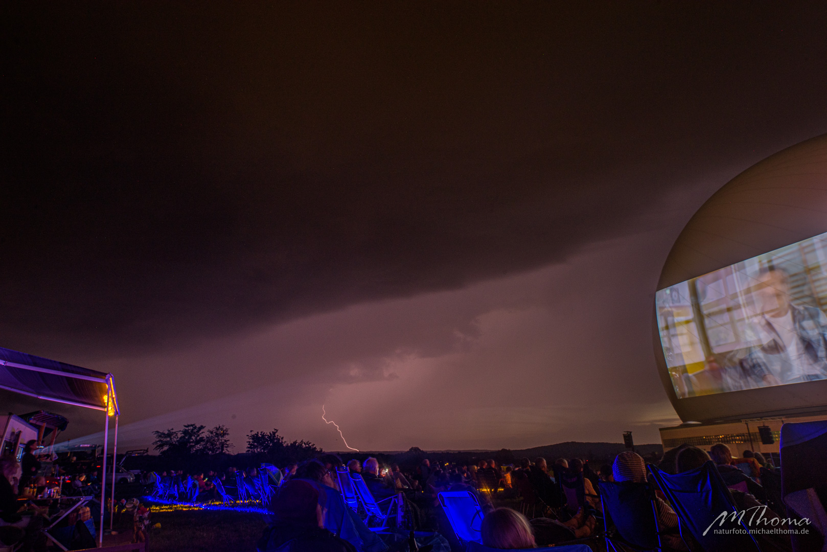 Zeitgleich mit dem Filmbeginn setzte dann das Gewitter ein. Ein paar erste Tropfen taten der Stimmung aber noch keinen Abbruch und bald hörte das Getröpfel auch wieder auf.
