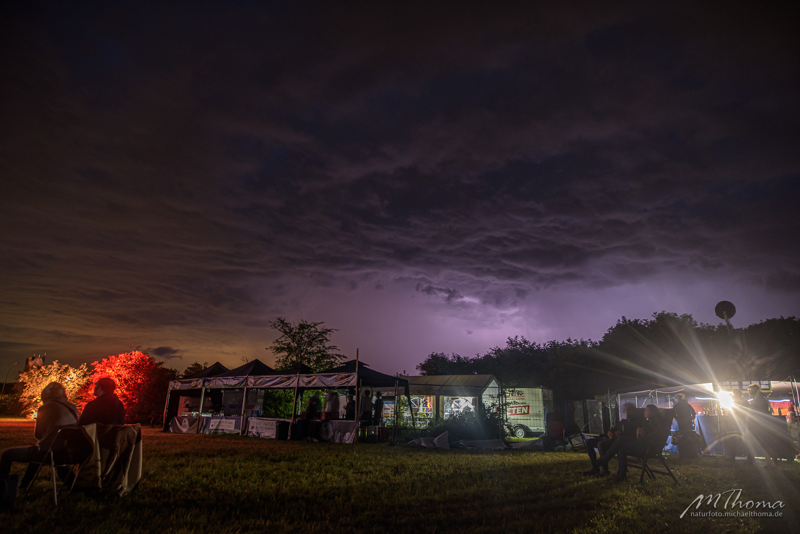 Nach etwa 20 Minuten kam dann aber ein Platzregen mit solcher Wucht, dass die meisten Zuschauer nun doch die Flucht ergriffen. Ein paar Handvoll hielten aber doch bis zum Ende aus, auch wenn die ganze Zeit ringsum zum Glück etwas entfernt die Blitze zuckten.