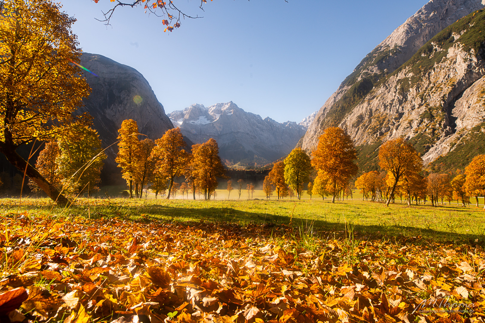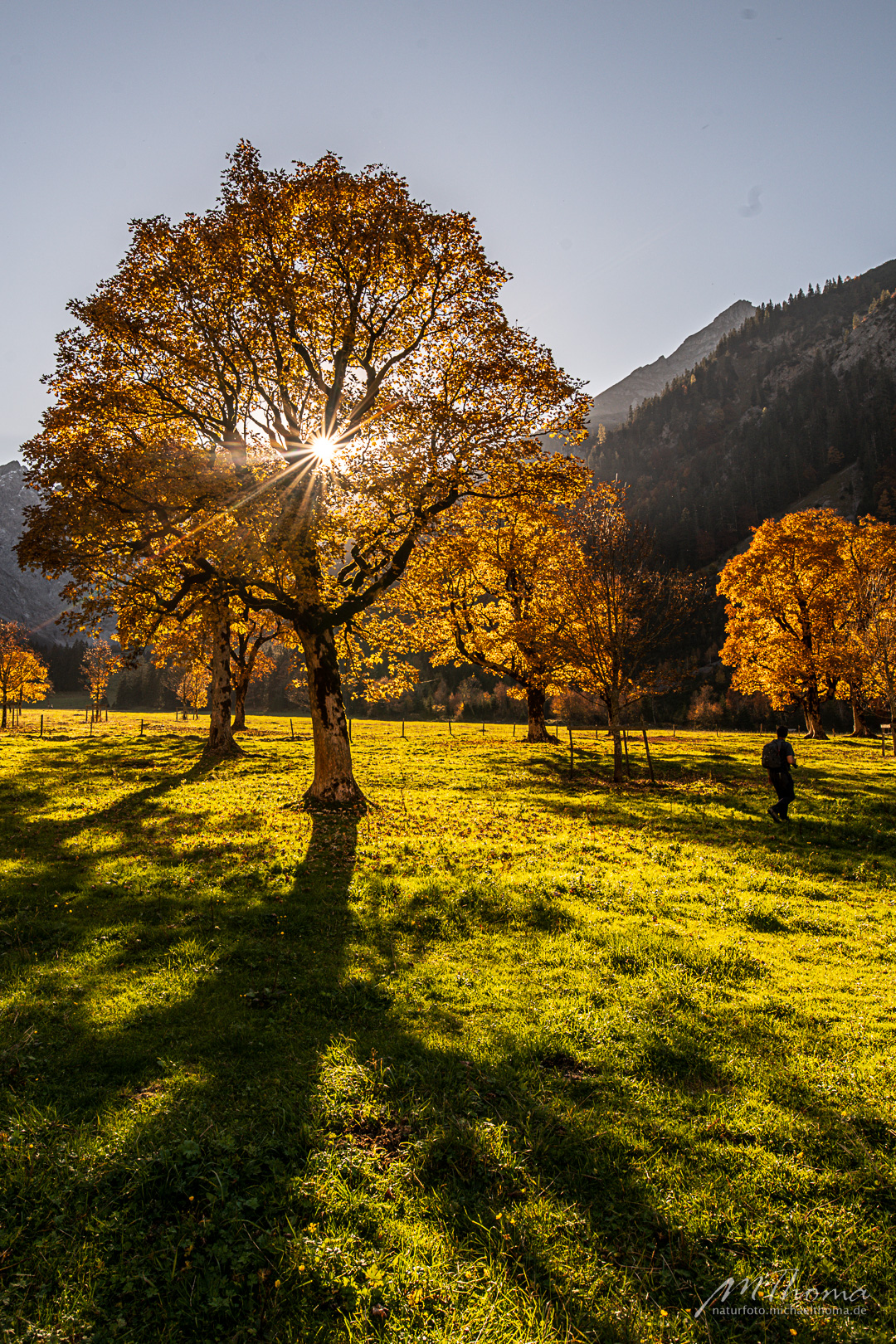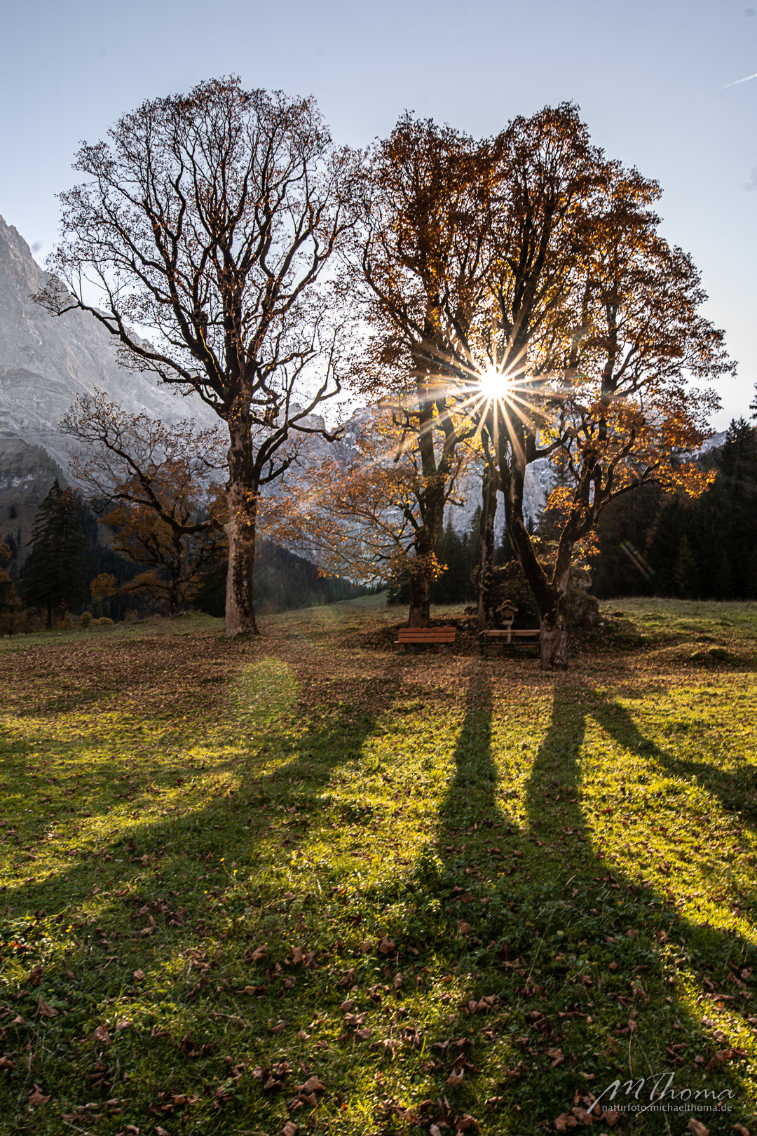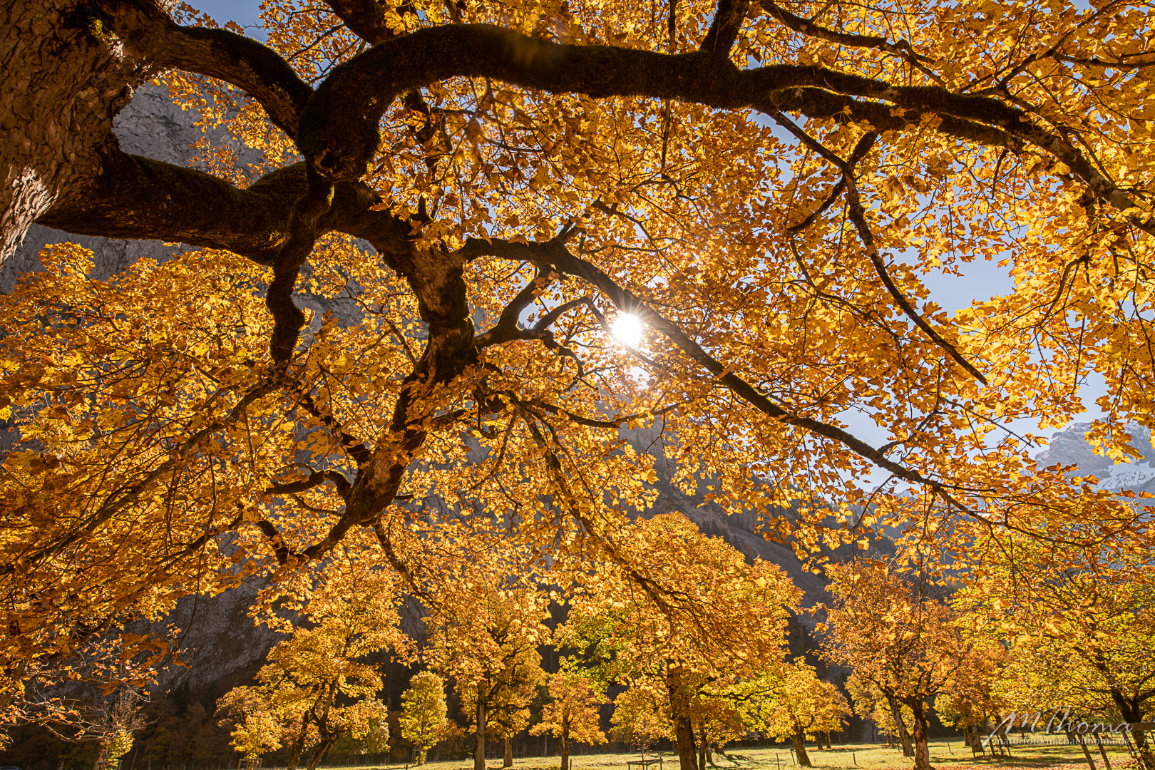 In den letzten Jahren hab ich den richtigen Zeitpunkt immer knapp verpasst, da war das meiste Laub schon gefallen. Aber dieses Jahr hab ich wohl den perfekten Zeitpunkt erwischt. Herrlich bunt gefärbtes Laub war noch auf den alten Bergahornen vorhanden.