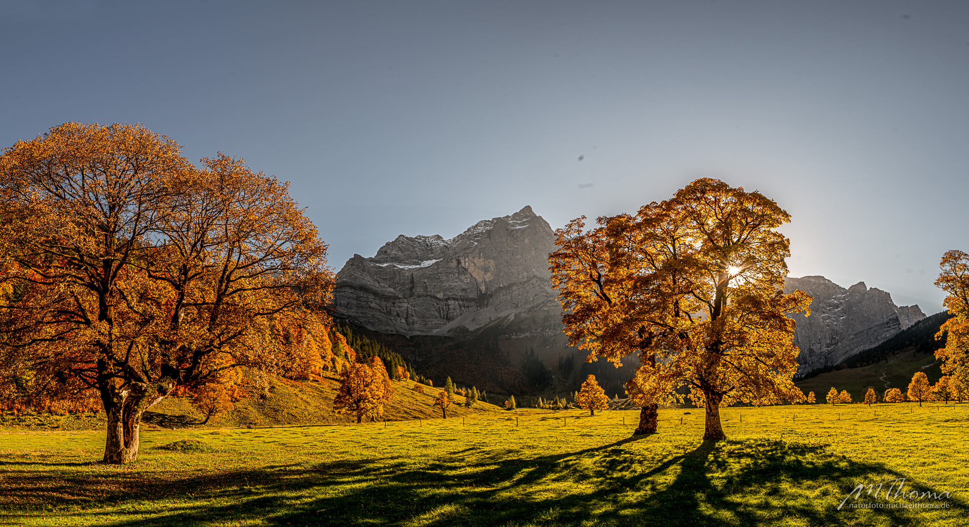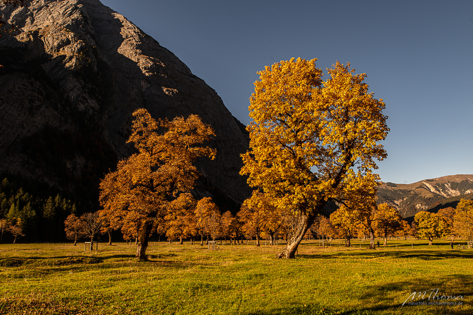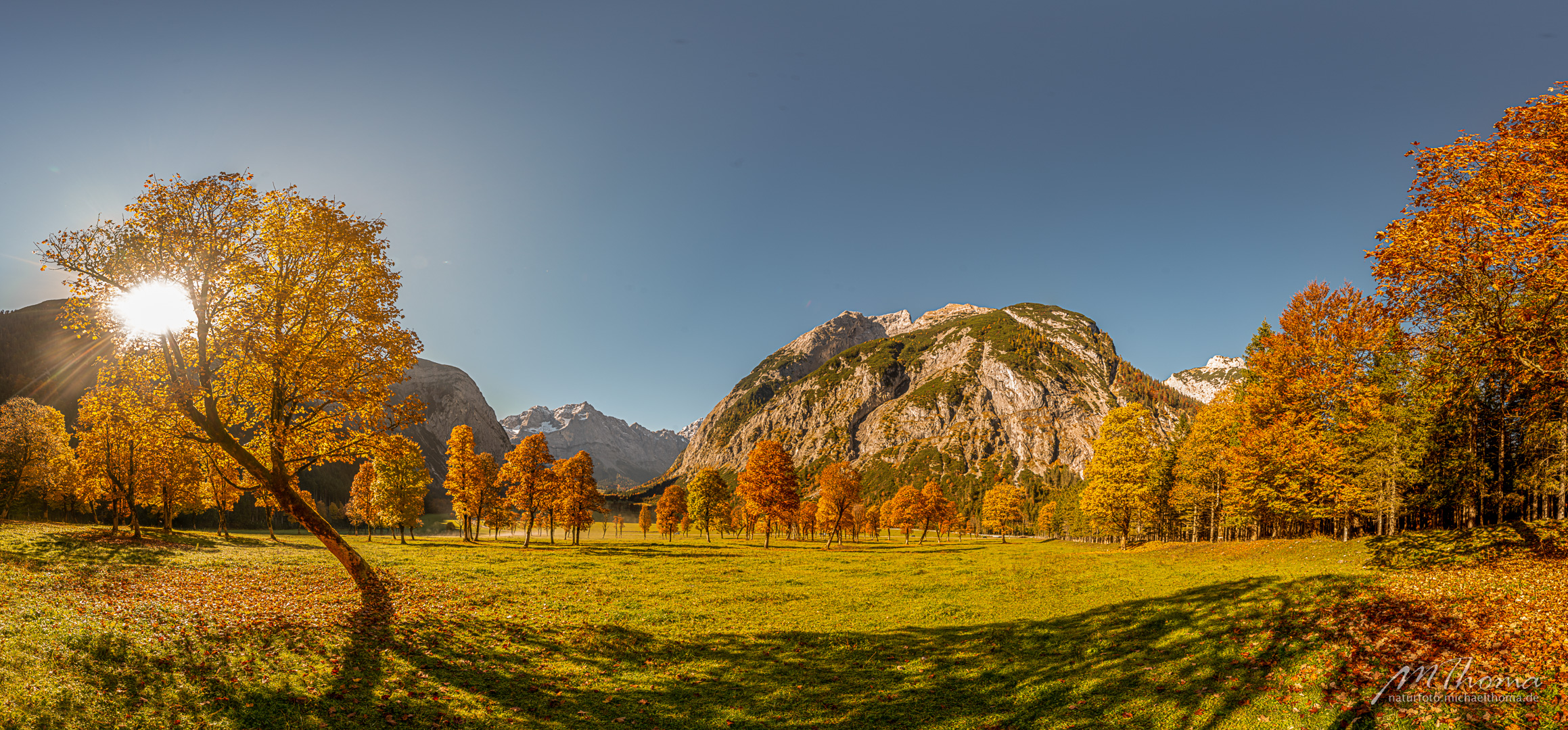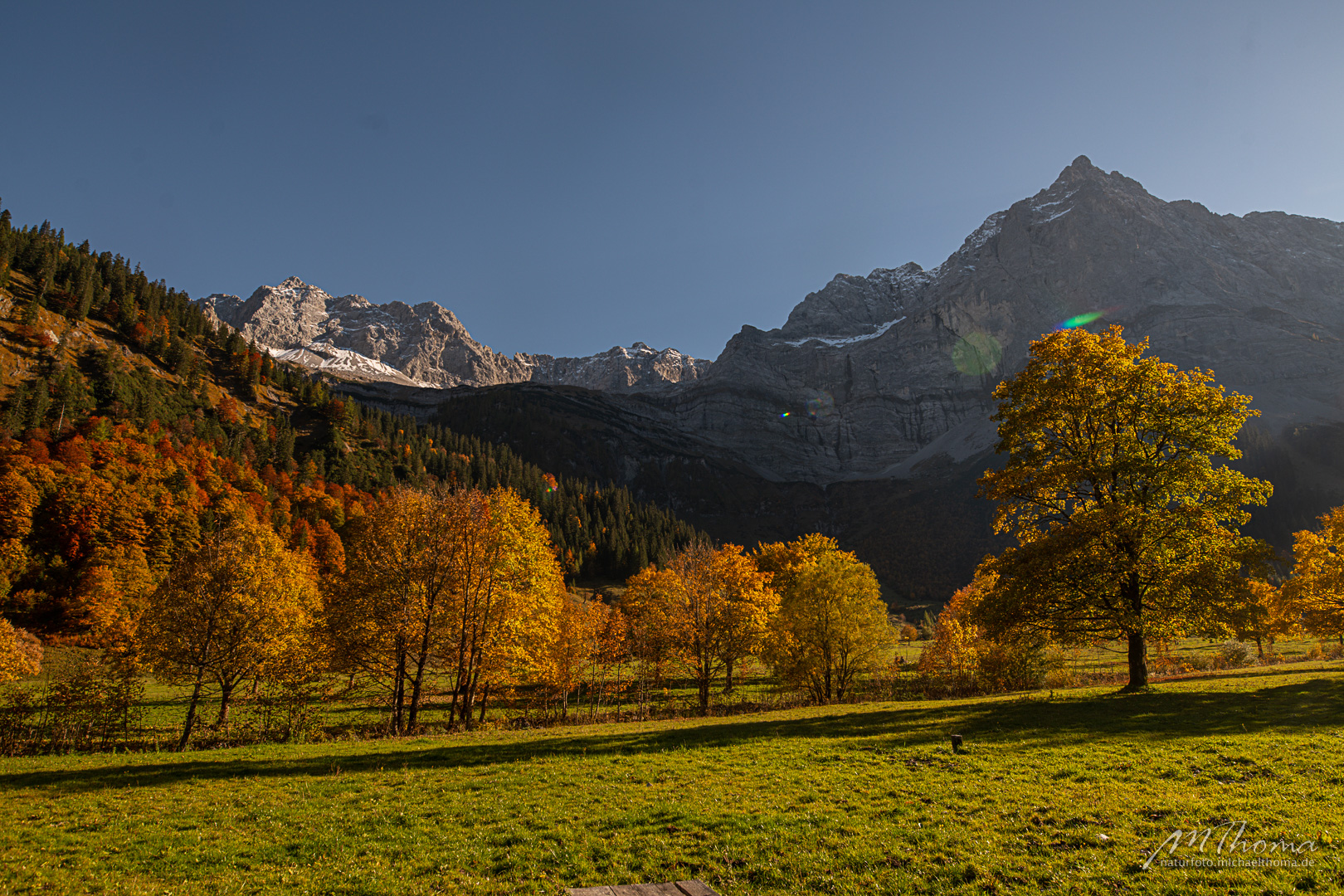 In den letzten Jahren hab ich den richtigen Zeitpunkt immer knapp verpasst, da war das meiste Laub schon gefallen. Aber dieses Jahr hab ich wohl den perfekten Zeitpunkt erwischt. Herrlich bunt gefärbtes Laub war noch auf den alten Bergahornen vorhanden.