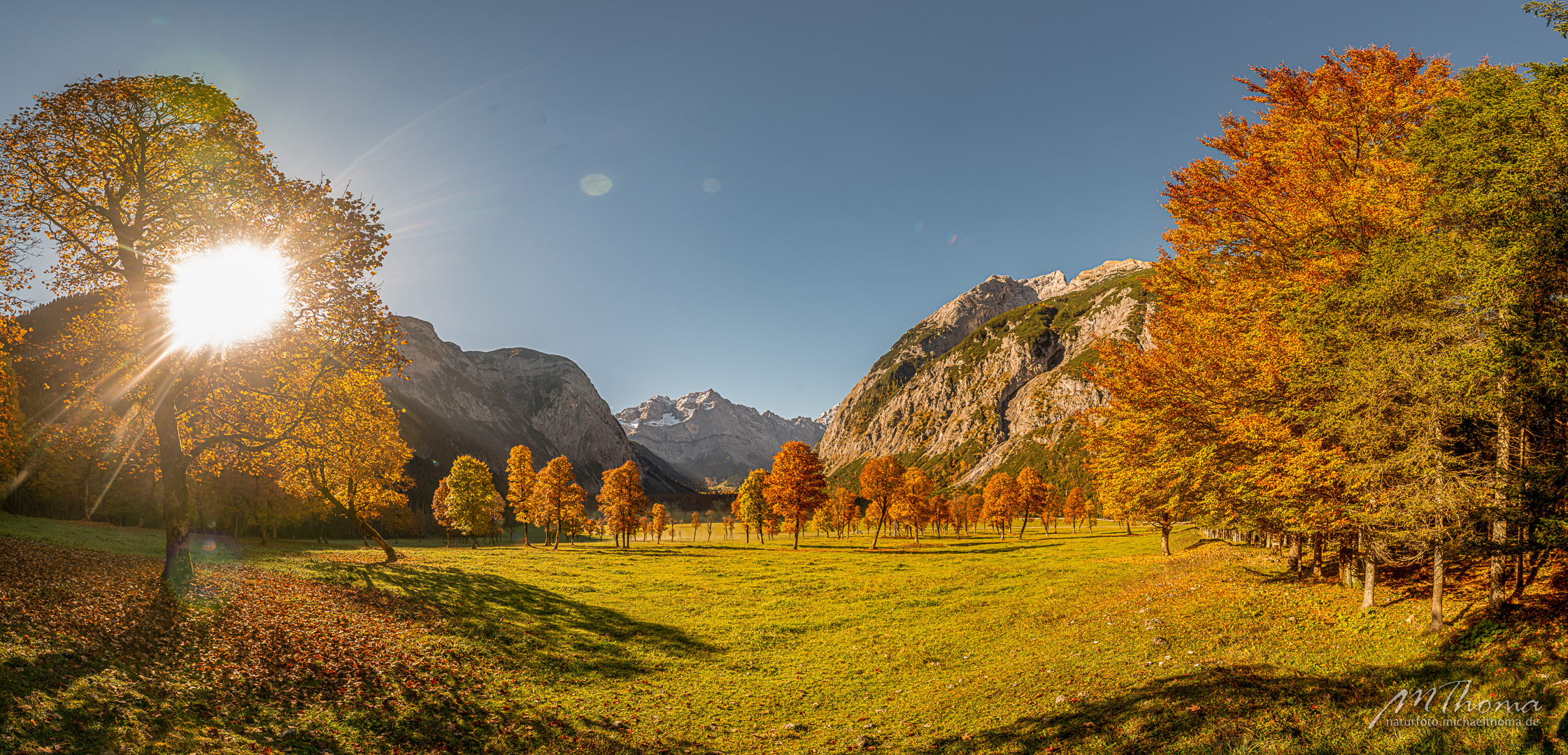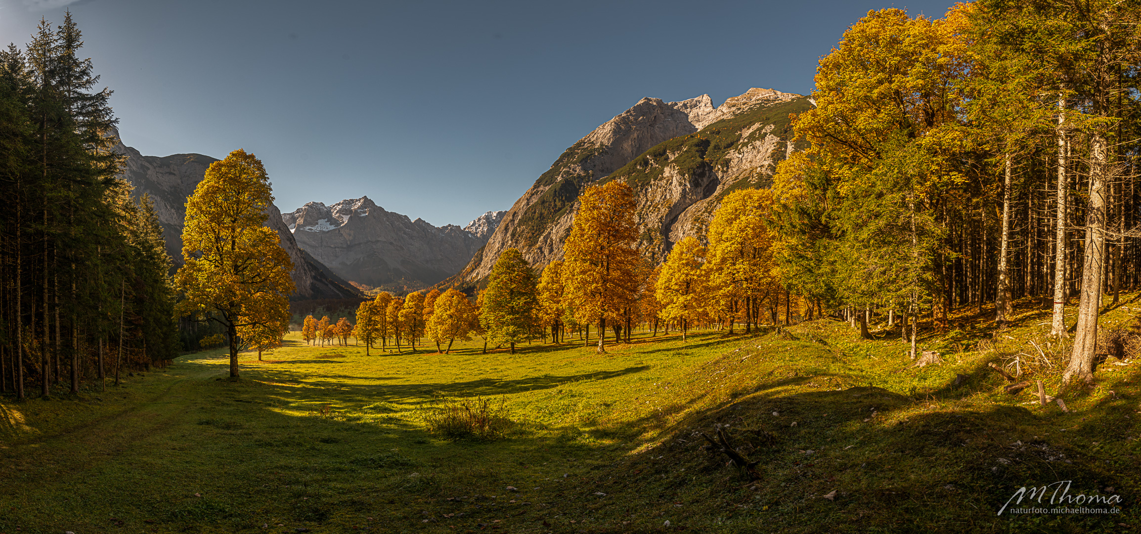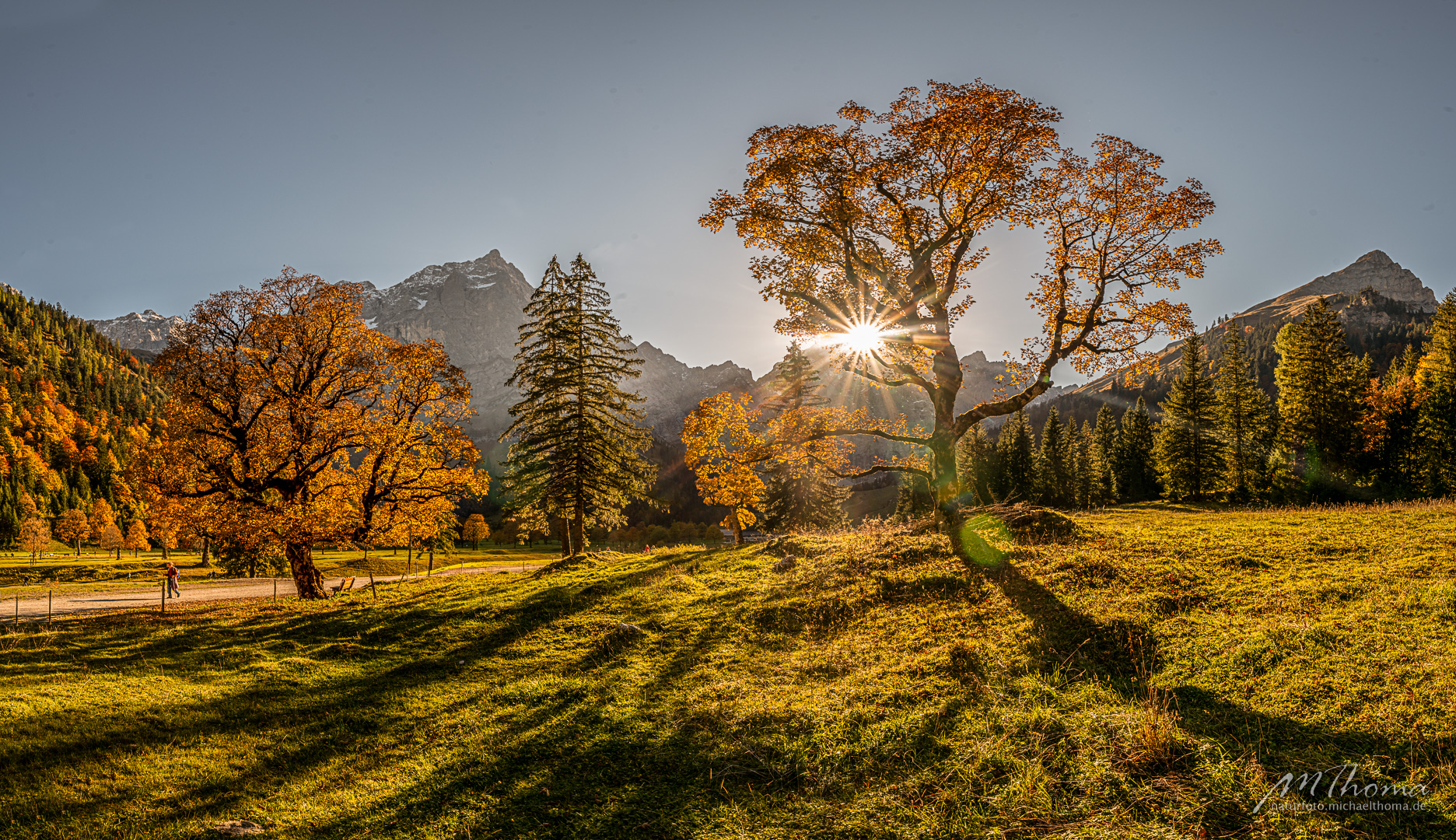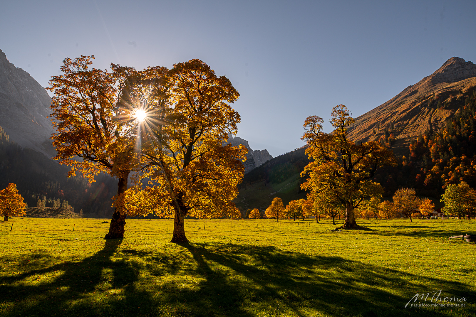 In den letzten Jahren hab ich den richtigen Zeitpunkt immer knapp verpasst, da war das meiste Laub schon gefallen. Aber dieses Jahr hab ich wohl den perfekten Zeitpunkt erwischt. Herrlich bunt gefärbtes Laub war noch auf den alten Bergahornen vorhanden.