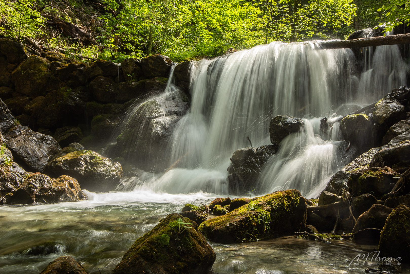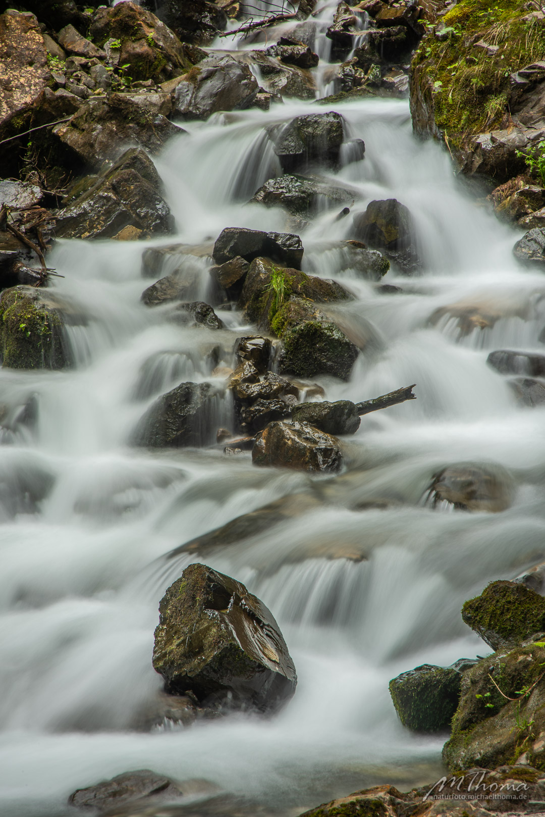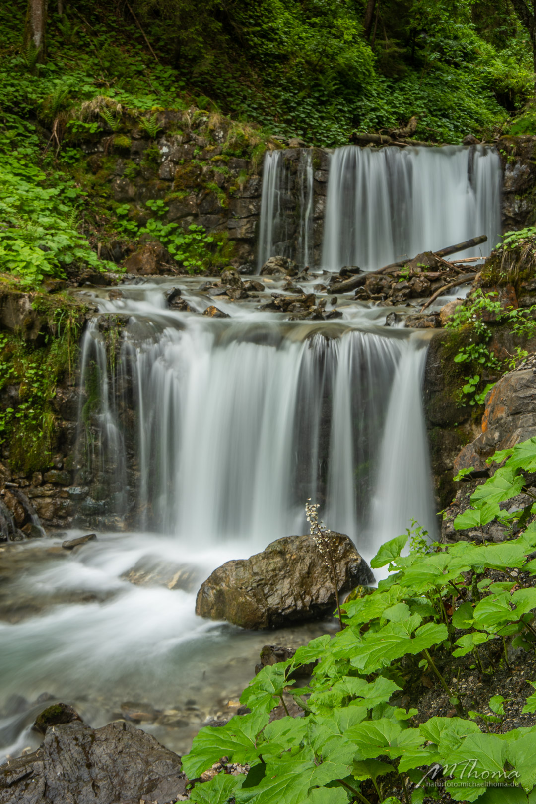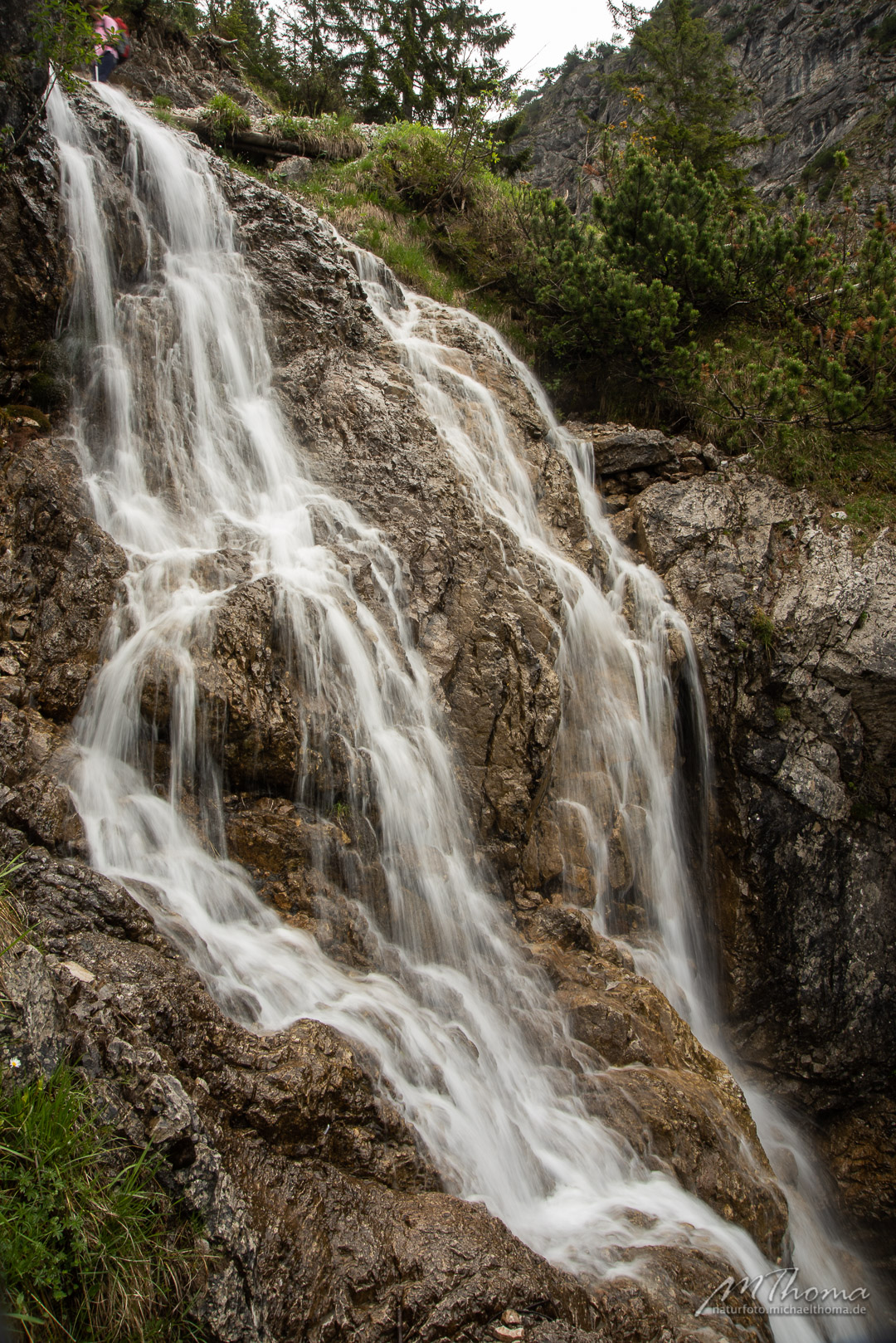 De Wanderung hinauf zum Gaisalpsee führt am Bach entlang vorbei an zahlreichen hübschen Kaskaden und Wasserfällen