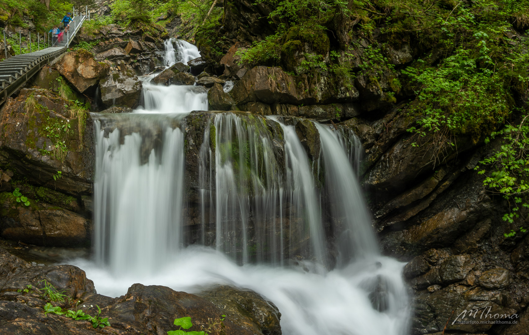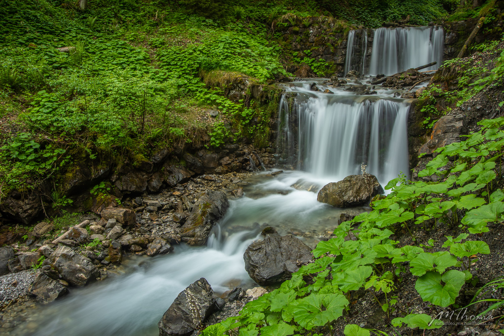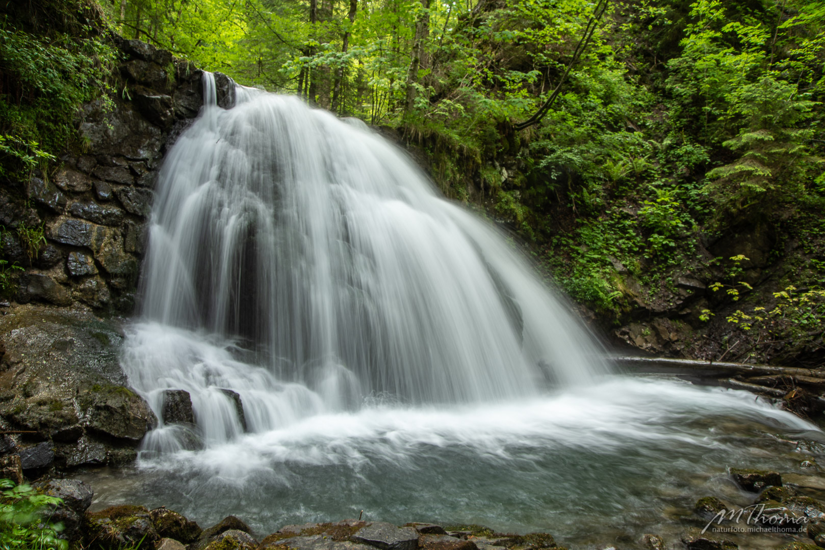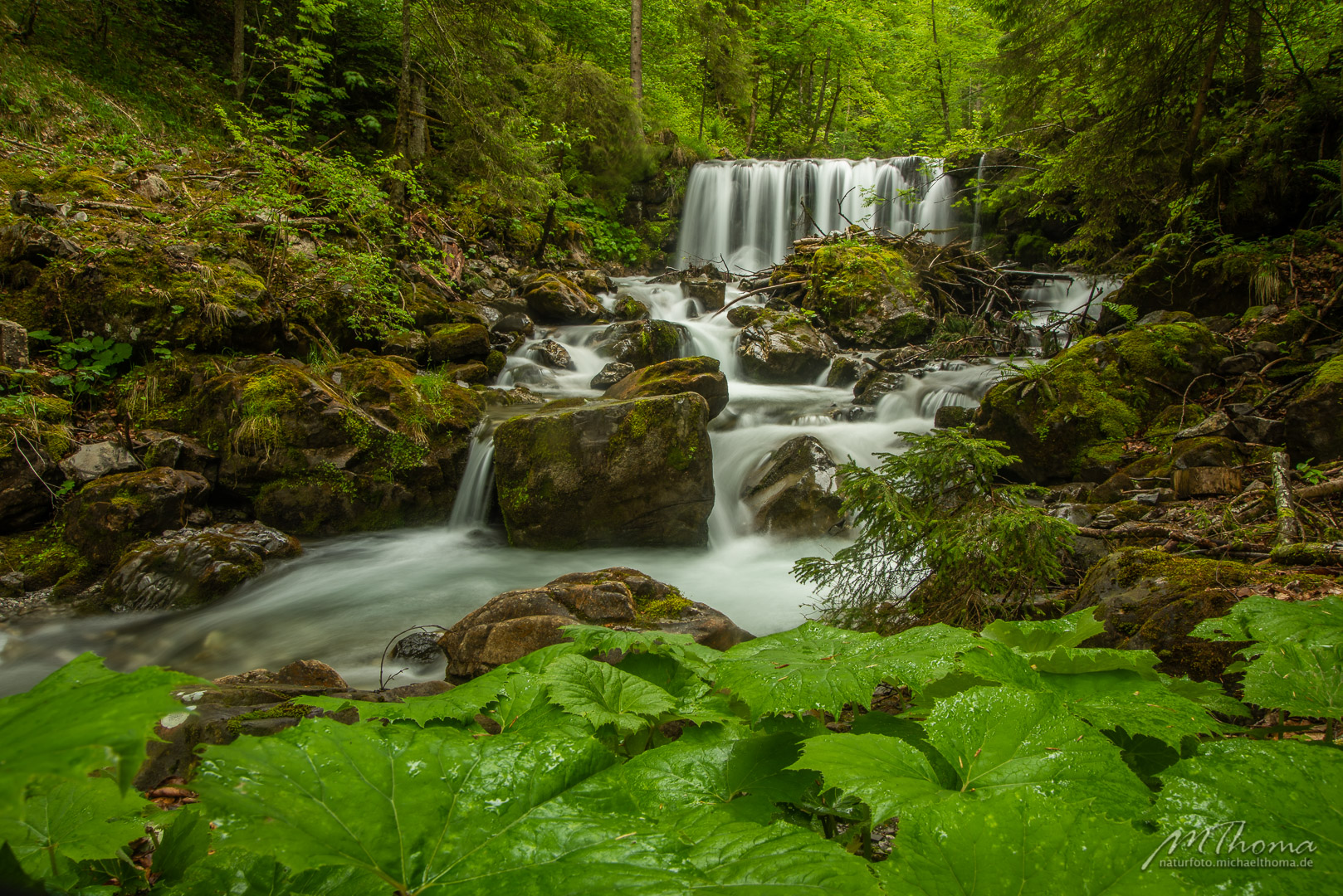De Wanderung hinauf zum Gaisalpsee führt am Bach entlang vorbei an zahlreichen hübschen Kaskaden und Wasserfällen