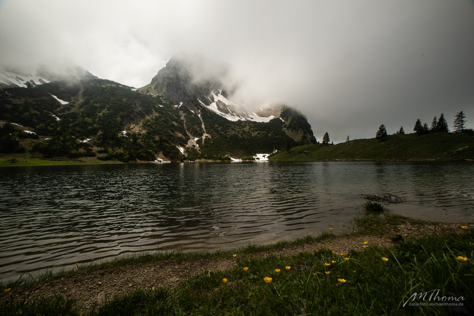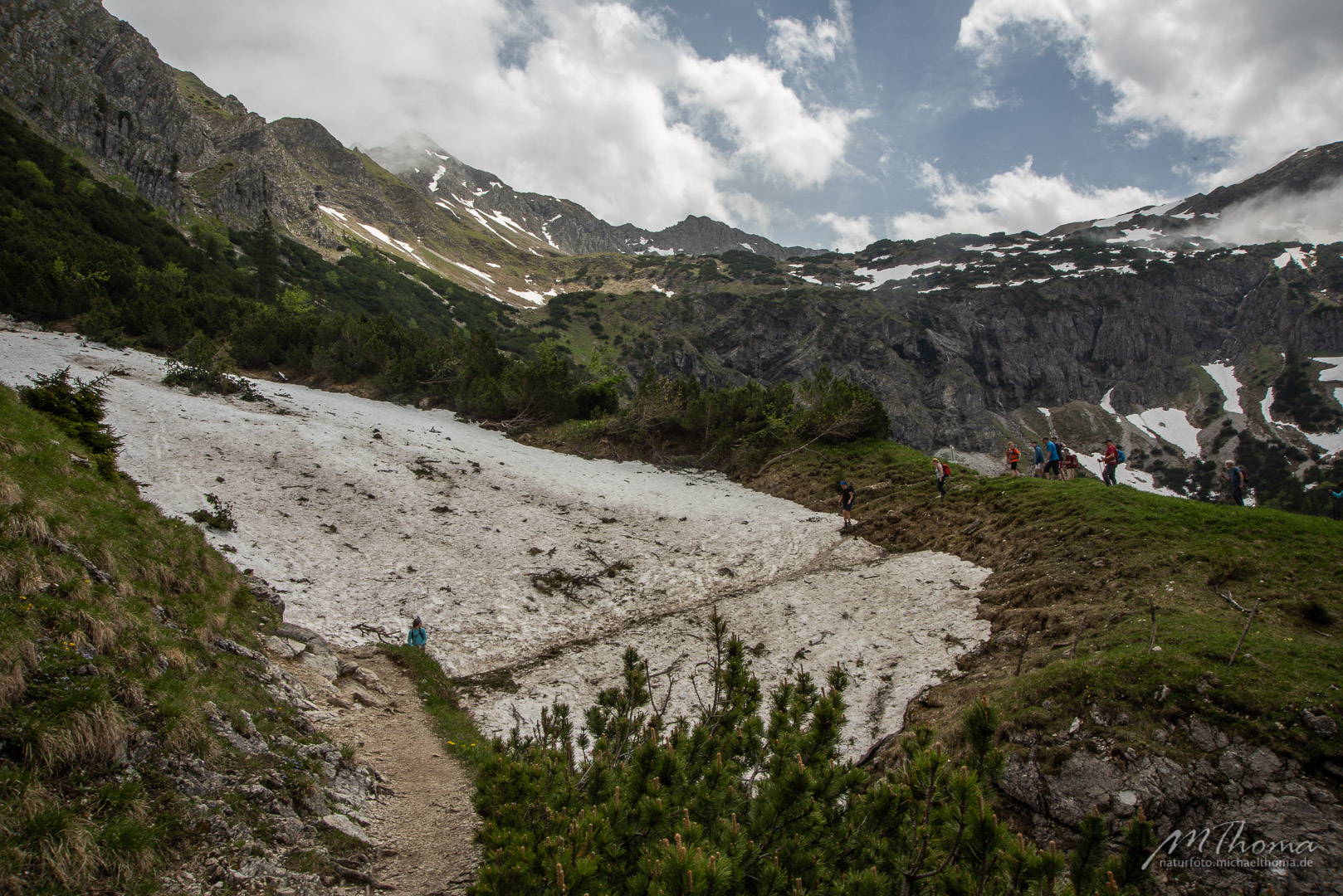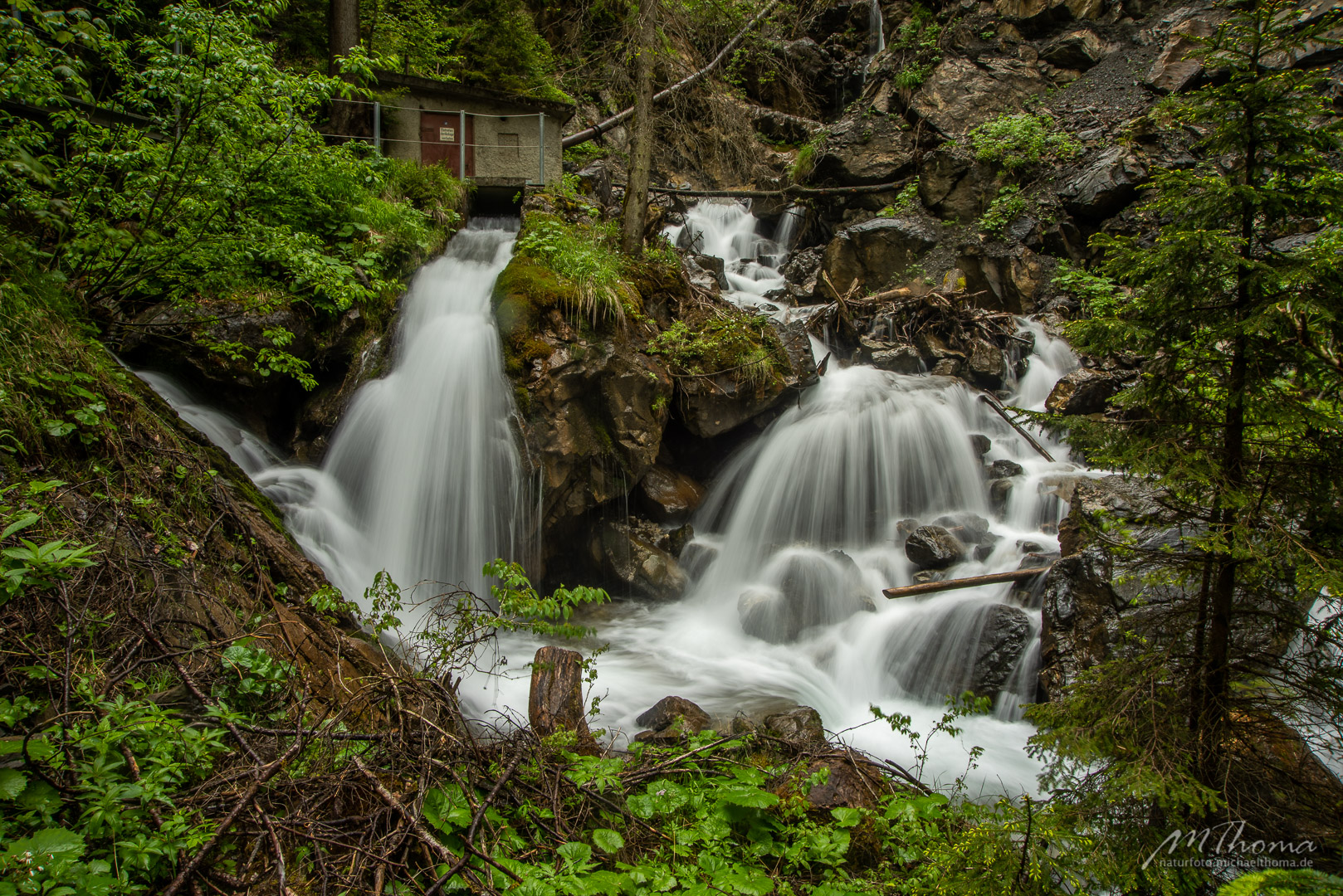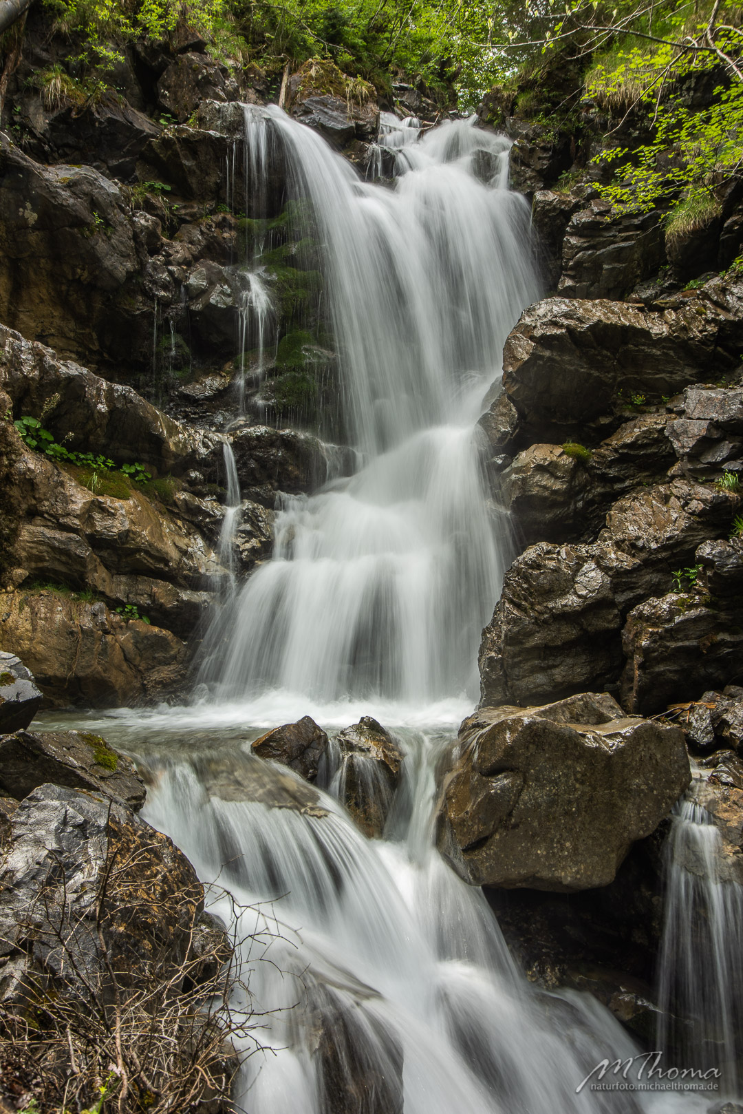 De Wanderung hinauf zum Gaisalpsee führt am Bach entlang vorbei an zahlreichen hübschen Kaskaden und Wasserfällen
