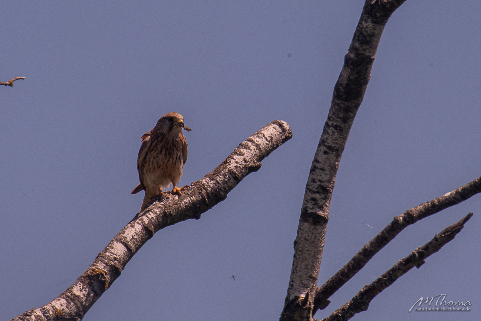 Baumfalke mit erbeutetem Grashüpfer im Leipheimer Moos (12.6.2022)